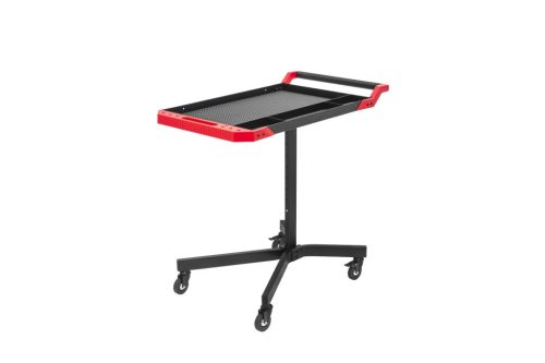 A munkalap rekeszekre osztott kialakítású, megkönnyítve az apró alkatrészek rendszerezését, felülete pedig oldószerálló védőszőnyeggel van ellátva.