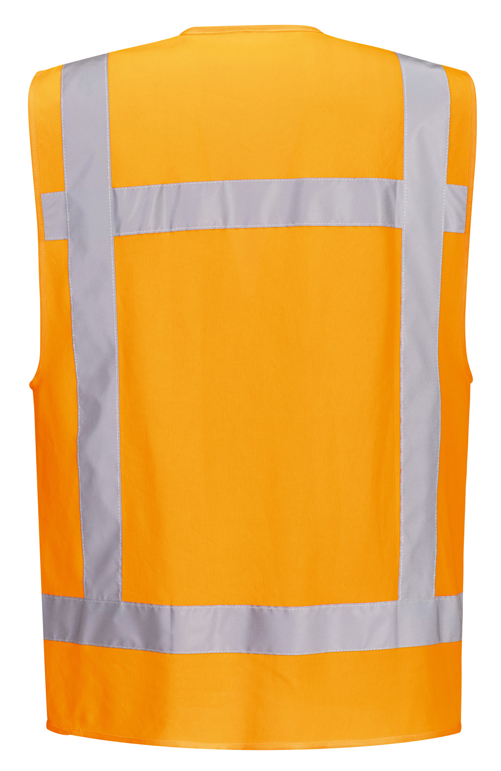 A fényvisszaverő szalag ezen a népszerű közlekedési mellényen RWS konfigurációban van a nagyobb láthatóság érdekében. A forradalmi kialakítású vezetői mellény egyesíti a mellény könnyű súlyát a zsebek praktikusságával. Ideális azokban a helyzetekben, amikor a kabát túl meleg lehet. Átlátszó azonosító zseb a biztonsági kártyák számára