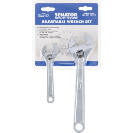SENATOR 6"/10" KRÓMOZOTT, SÜLLYESZTÉKBEN KOVÁCSOLT ÁLLÍTHATÓ VILLÁSKULCS SZETT