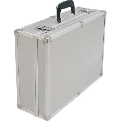 Erős táska szerszámok tárolásához, ideális mozgó szervizeseknek. Ezüstszínű alumínium táska megerősített élekkel és sarkokkal. Az alaprekesz elosztólapjai az adott méretnek megfelelően állíthatók. A fedélben található kivehető szerszámtábla 16 zsebe különböző méretű szerszámok elhelyezésére alkalmas. Rögzített fogantyú, két biztonsági zár és kulcsok.