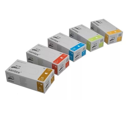 A SANTEX LATEX kesztyű latex vizsgálókesztyű, púderes, diagnosztikai és védő. A Santex kesztyűk természetes latex gumiból készültek, a púdernek köszönhetően könnyebben feszíthetők a kézen. széles felhasználási kör: - véd a mechanikai hatásoktól,