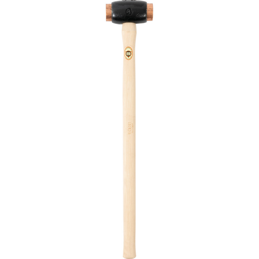 Kovácsolt vas fej tiszta elektrolitréz betétekkel nagy erejű ütésekhez. Tömör fanyél.