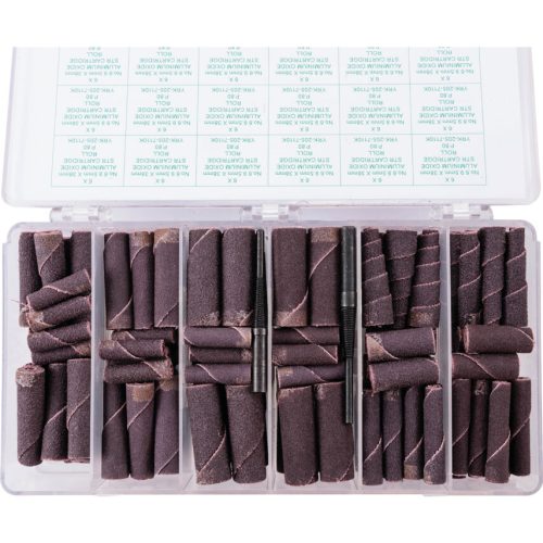 Egyenes csiszolótekercsek: 6 - 10 x 38 mm P80 és P120. 4 - 13 x 38 mm P80 és P120. 12 - 6 x 38 mm P80 és P120. 16 - 6 x 25 mm P80 és P125. 6 - 10 x 25 mm P80 és P120.