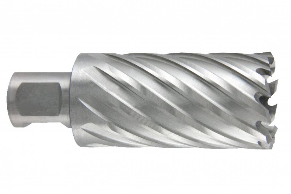 Weldon (3/4") és Nitto rendszerű befogóval rendelkező oszlopos és mágnestalpas fúrógépekhez. Nagy teljesítményű HSS gyorsacélból. Az optimalizált vágóél-geometria nagyobb fúrási teljesítményt és gyorsabb forgácselvezetést tesz lehetővé. Gyors, pontos fúrás pontozás és előfúrás nem szükséges. (Mivel a maglyukfúró csak fogszélességben forgácsol, jelentősen gyorsabb a fúrás, kisebb a szerszámkopás.)