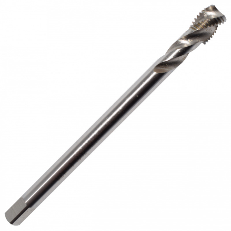 Gépi menetfúró azonos átmérőjű szárrésszel és jobbos spirálhoronnyal 35° RSP DIN374 zsákfurat menethez.