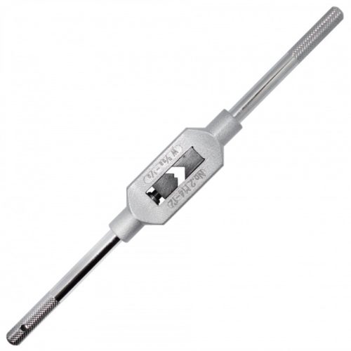 Ideális menetvágáshoz nehezen hozzáférhető helyeken. Kétpofás befogóval négyszög szárak befogásához. Acél szárakkal, ebből az egyik szár lecsavarozható, a másik rögzít.