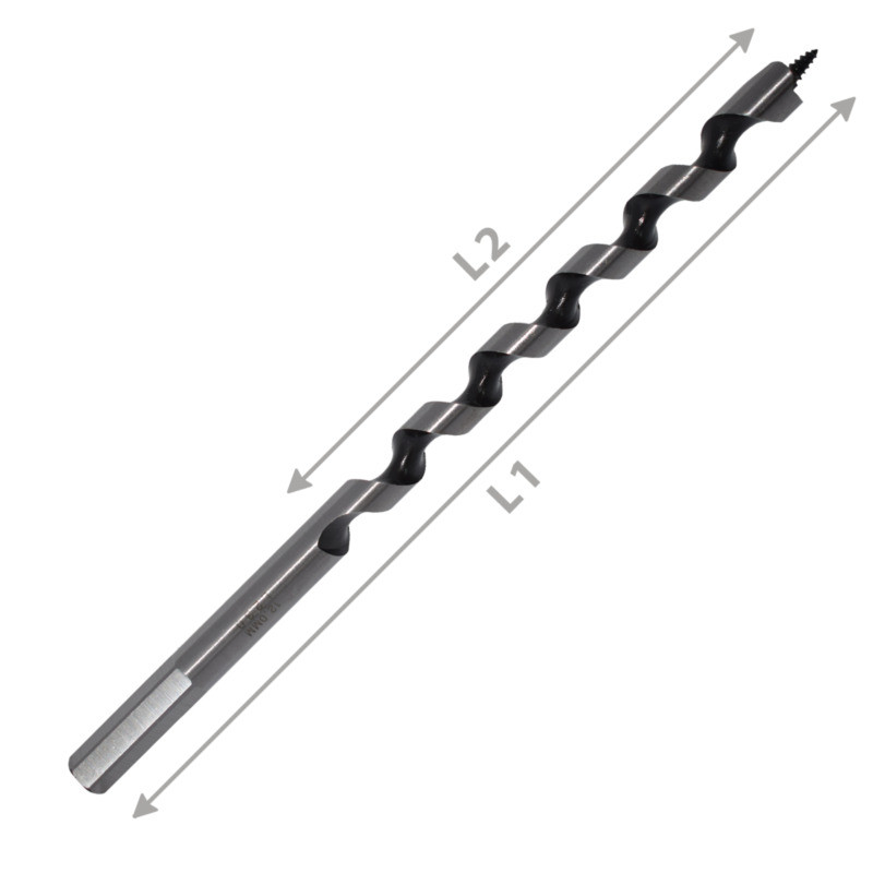 Edzett króm-vanádium (CV) acélból készült gerendafúró, ún. LEWIS spirálformával, esztergált központosító csúccsal és elővágó éllel
