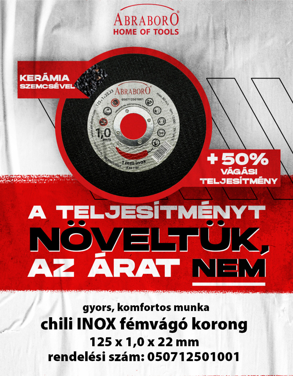 ABRABORO CHILI fémvágó korong, inox, kerámia szemcsével125x1 mm