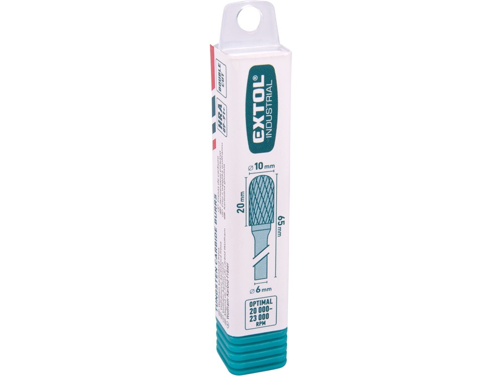 EXTOL INDUSTRIAL keményfém turbómaró (rotormaró), hengeres, kerek orrú, átmérő 10×20mm/szár 6mm, keresztfogazás