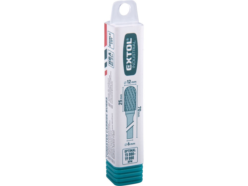 EXTOL INDUSTRIAL keményfém turbómaró (rotormaró), hengeres, kerek orrú, átmérő 12×25mm/szár 6mm, keresztfogazás