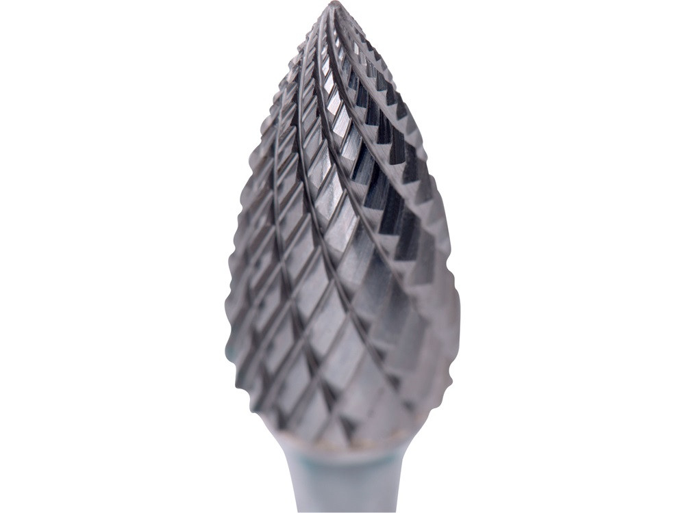 EXTOL INDUSTRIAL keményfém turbómaró (rotormaró), íves, hegyes orrú, átmérő 12×25mm/szár 6mm, keresztfogazás