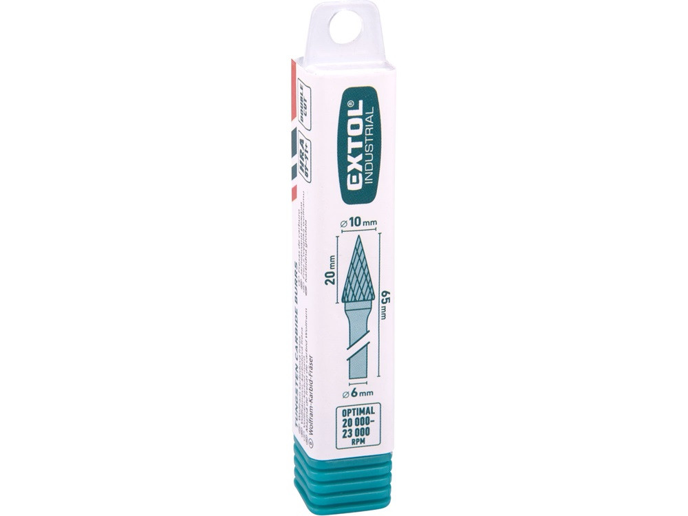 EXTOL INDUSTRIAL keményfém turbómaró (rotormaró), kúpos, hegyes orrú, átmérő 10×20mm/szár 6mm, keresztfogazás
