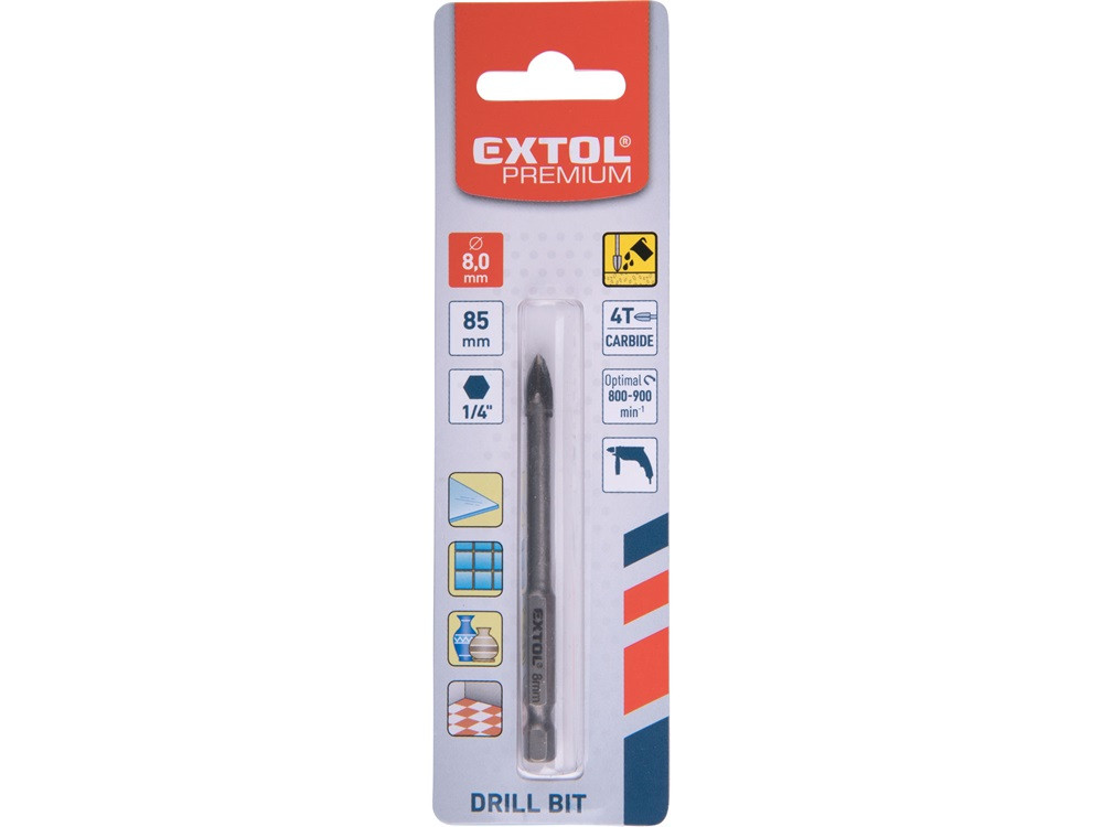 EXTOL PREMIUM fúró üvegre, kerámiára és csempére, keményfém lapkás; 8×85mm, 1/4" hatszög befogás