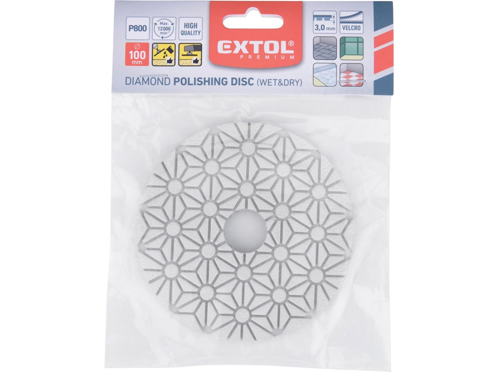 EXTOL PREMIUM gyémánt csiszolókorong/polírkorong, csempe élcsiszoló, tépőzáras; 100mm, P800, száraz és vizes