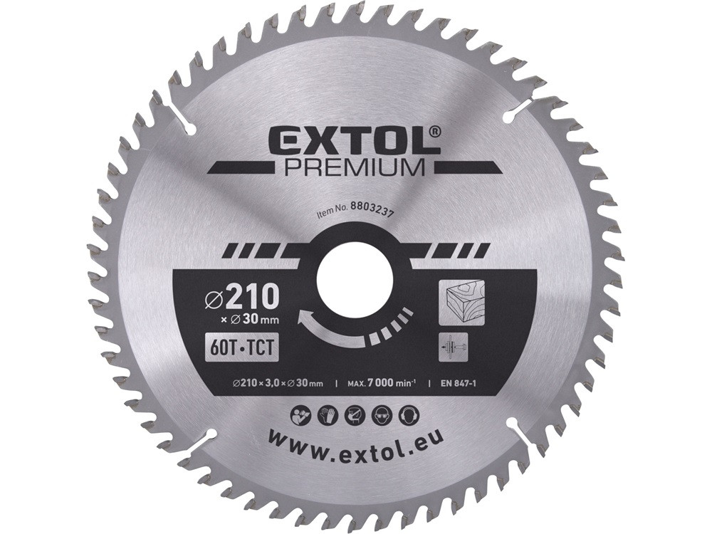 EXTOL PREMIUM körfűrészlap, keményfémlapkás, 300×30mm(lyuk átm), T96; 3,2mm lapkaszélesség, max. 5000 ford/perc