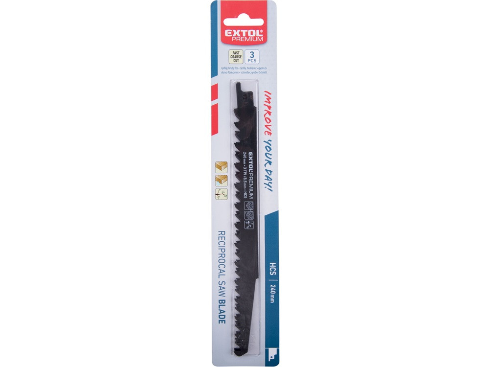 EXTOL PREMIUM szablyafűrészlap klt., 3db, Bosch befogás, 240 mm, 3T, HCS, fához