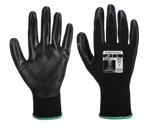 Portwest A320 - Nylon nitrilhab tenyérmártott kesztyű, fekete