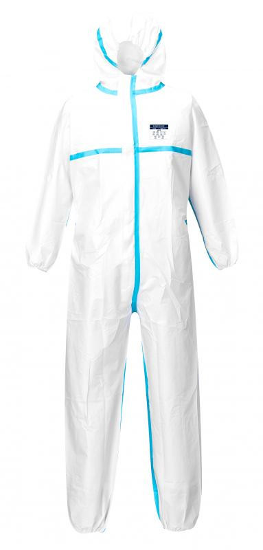 Extrém magas védelmi képességű Microporous overál típus, mely vegyi védelmet biztosít és véd a biológiai ágensek por ártalmaitól is. Strapabíró anyag ragasztott varrásokkal. Ergonómikus szabás és lélegzőképesség.